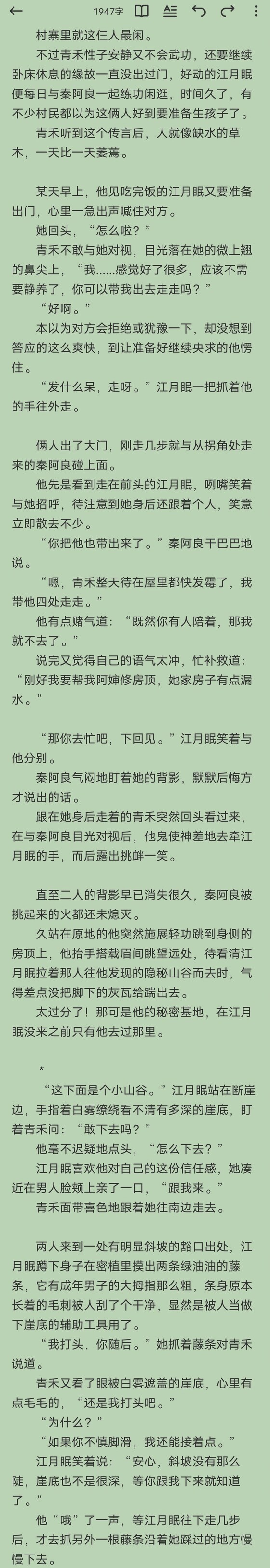 吃饱喝足后,雨虽然没有变大,但仍旧在下着。这时的崖壁一定很湿滑,江月眠虽然轻功好,硬要冒着雨离开也不是不行,可青禾不会武功,为了安全着想还是等雨停了再说。