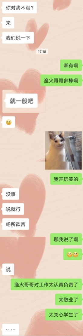 不管现实生活中的渔火是怎么样的人,网络世界的渔火高冷、严厉、耐心、值得信赖、可以引领她成长、让她进步。