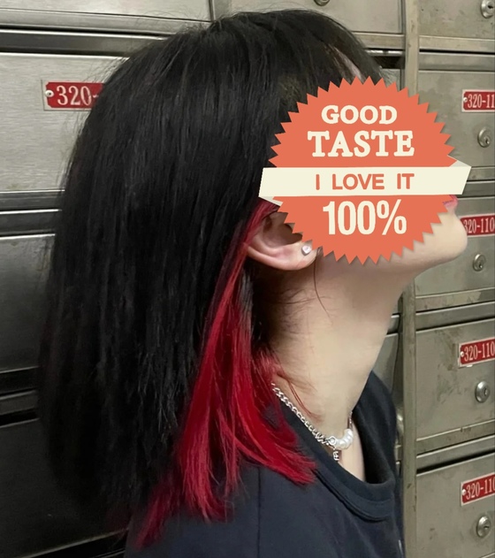 “好勒!”托尼老师先带着她去洗个头,“就挂耳染红是吗,外面这层黑发不动?”